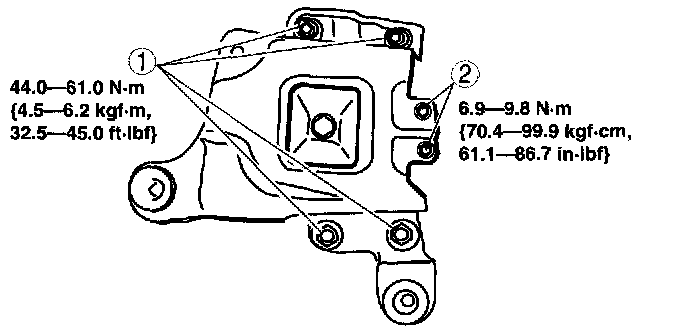 2. Install the No.4 engine mount bracket on the transaxle case and tighten bolt and nuts.