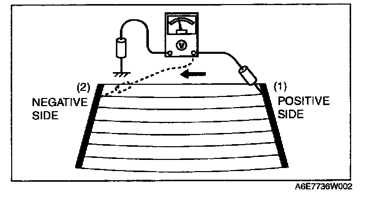 CAUTION: Directly touching the rear window defroster filament with the lead of the tester could damage it. Wrap aluminum foil around the end of the lead and inspect the filament by touching it with the foil.