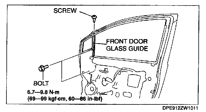 7. Remove the front door glass guide and glass run channel as a single unit.