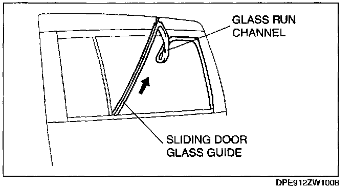 14. Lift the sliding door glass up and remove it by sliding it to the vehicle rear.