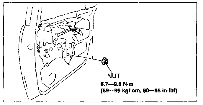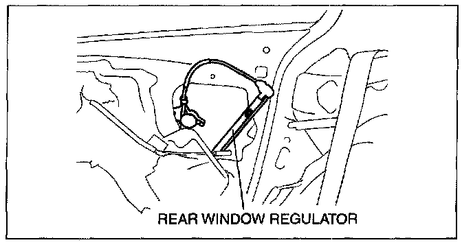 6. Take the rear window regulator out through the service hole.