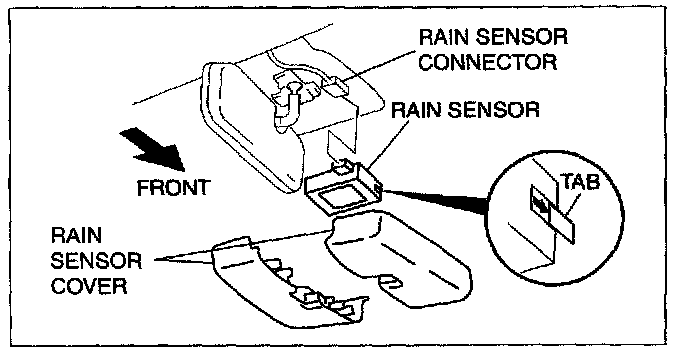 5. Slide the tab in the direction of the arrow and remove the rain sensor.