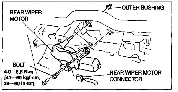 5. Disconnect the rear wiper motor connector.