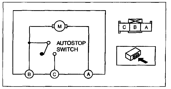 REAR WIPER MOTOR INSPECTION1. Connect battery positive voltage to the rear wiper motor terminal B, and ground the rear wiper motor terminal A.