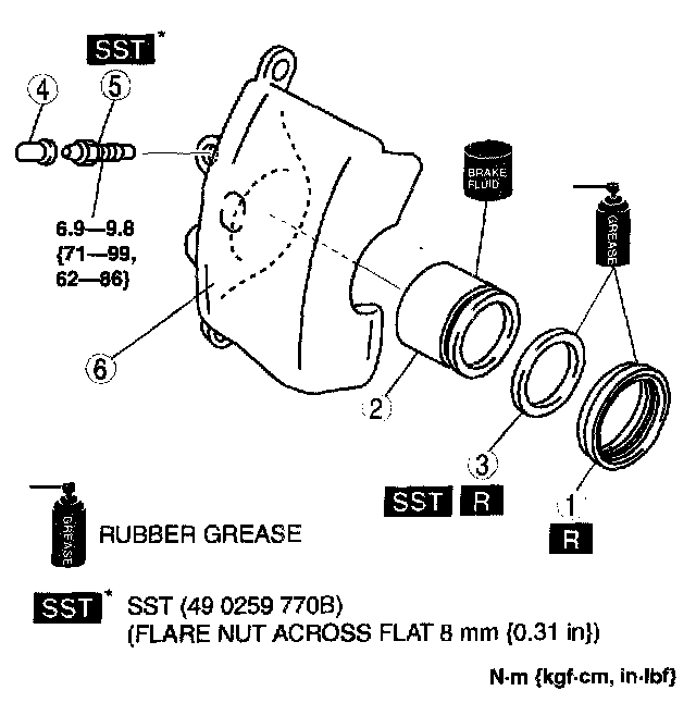 CALIPER (FRONT) DISASSEMBLY/ASSEMBLY [L3, AJ]1. Disassemble in the order indicated in the table.