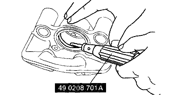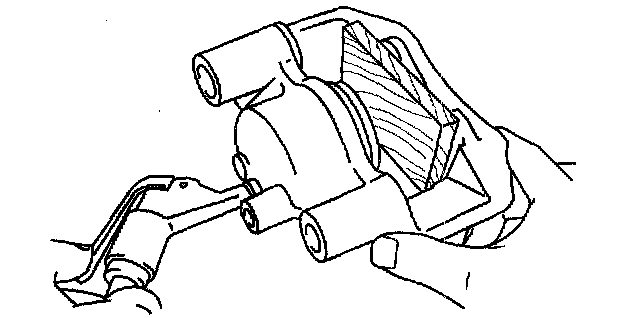 1. Place a piece of wood in the caliper, then blow compressed air through the hole to force the piston out of the caliper.