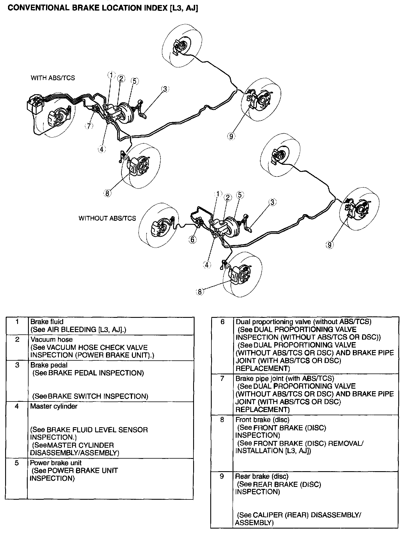 CONVENTIONAL BRAKE LOCATION INDEX [L-3, AJ]: