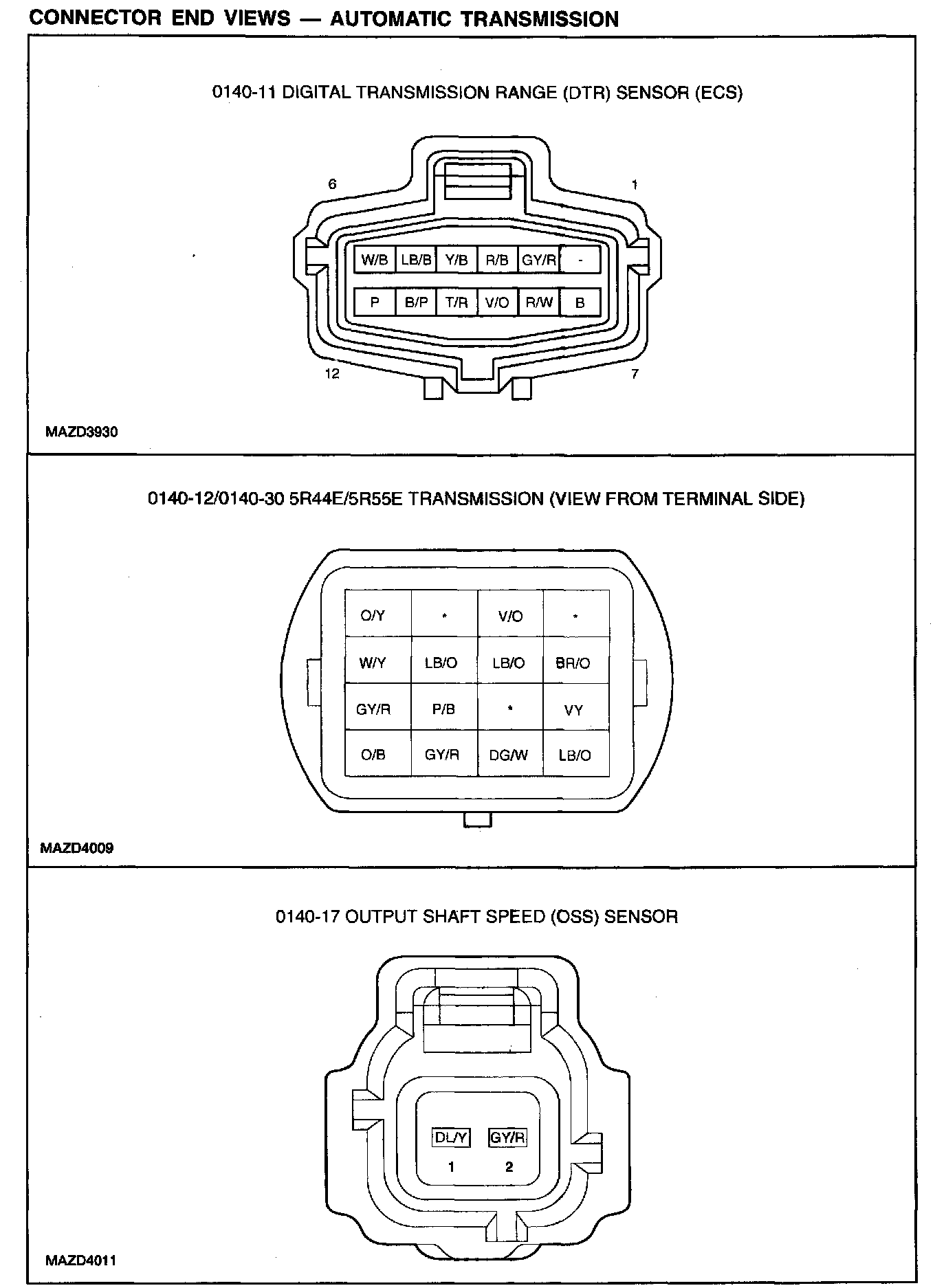 CONNECTOR END VIEWS - AUTOMATIC TRANSMISSION: