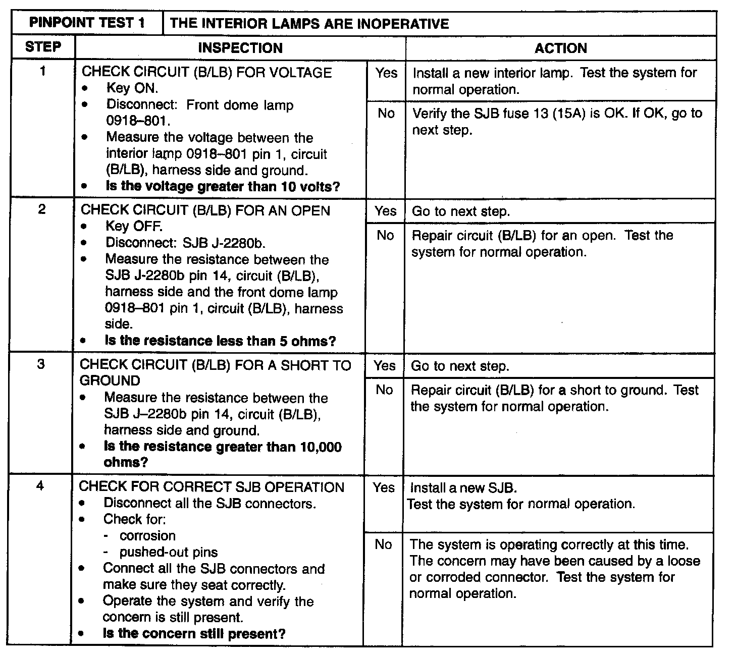 PINPOINT TEST 1: THE INTERIOR LAMPS ARE INOPERATIVENormal Operation