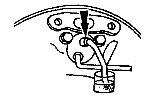 14. Connect one end of a flexible tube to the master cylinder bleeder screw. Submerge the other end in a container partially filled with the specified brake fluid.