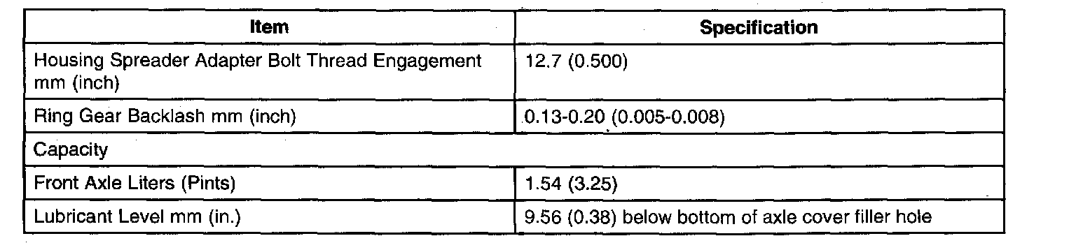 Front Differential General Specifications
