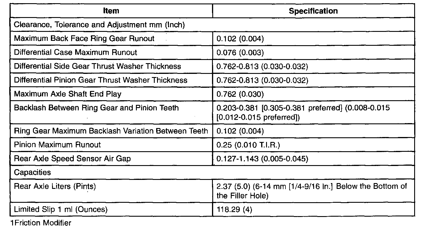 Rear Differential General Specifications