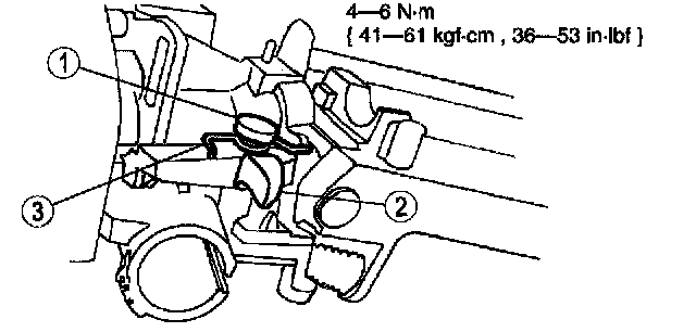 5. Remove the key release lever bolt (1), lever (2) and spring (3).