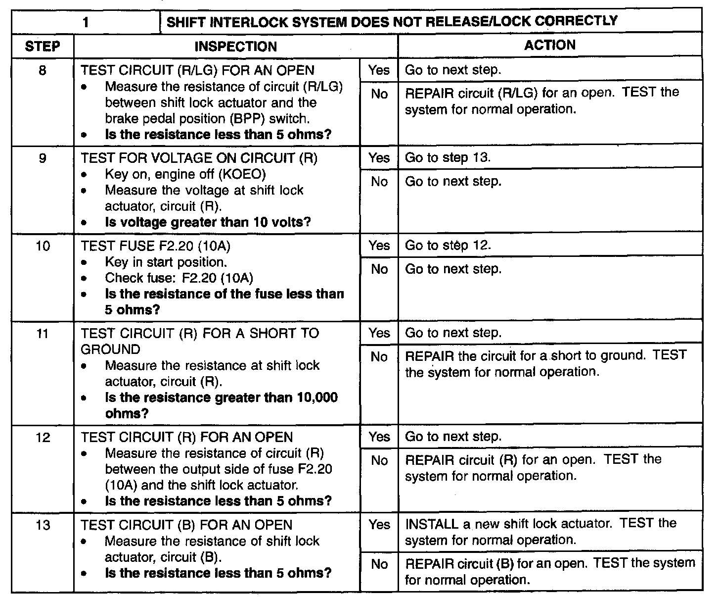 AUTOMATIC TRANSMISSION EXTERNAL CONTROLS PINPOINT TEST 1: SHIFT INTERLOCK SYSTEM DOES NOT RELEASE / LOCK PROPERLY