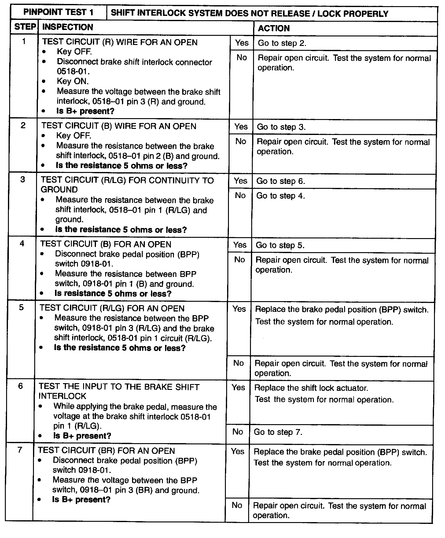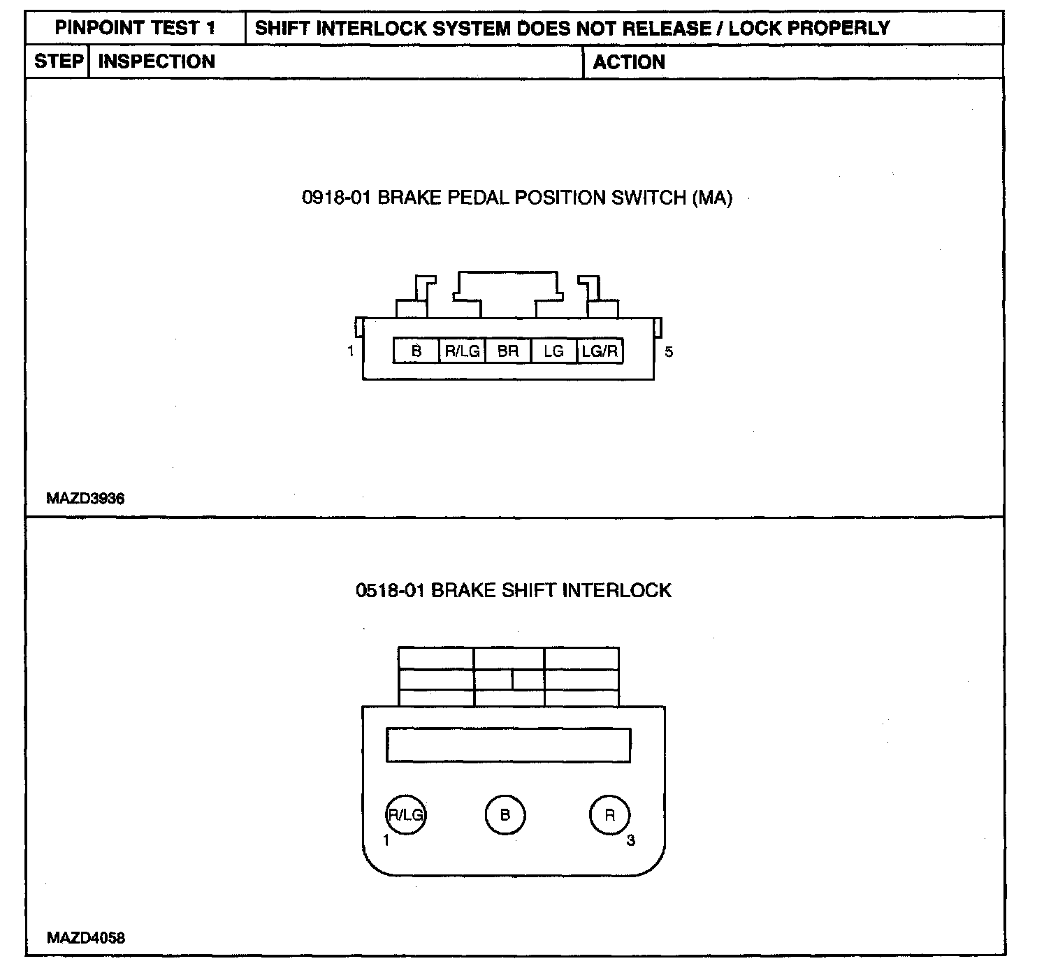 AUTOMATIC TRANSMISSION EXTERNAL CONTROLS PINPOINT TEST 1: SHIFT INTERLOCK SYSTEM DOES NOT RELEASE / LOCK PROPERLY