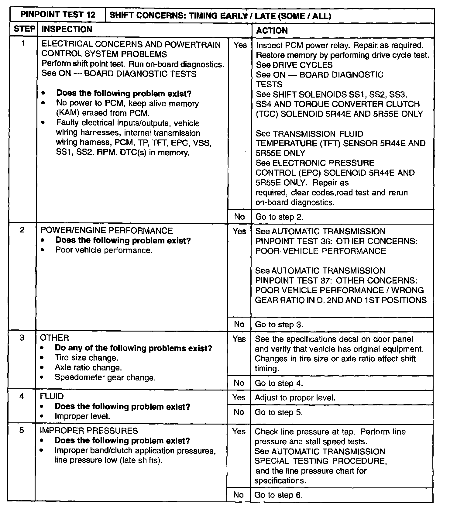 AUTOMATIC TRANSMISSION PINPOINT TEST 12: SHIFT CONCERNS: TIMING EARLY / LATE (SOME / ALL)Note: To diagnose specific shift-timing concerns, see the appropriate shift test.