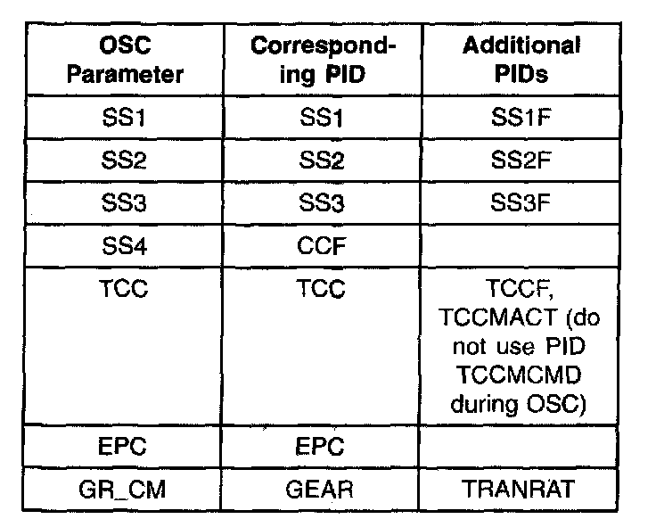 To confirm that the OSC value was sent by the WDS or equivalent tester and the PCM has accepted the OSC substitution, a corresponding PID for each OSC parameter must be monitored. Additional PIDs should be monitored to help the technician adequately diagnose the transmission.