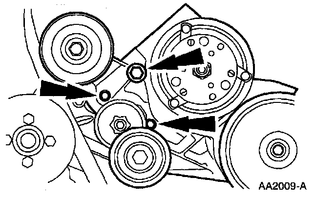 6. Remove the bolts from the A/C compressor mounting bracket.