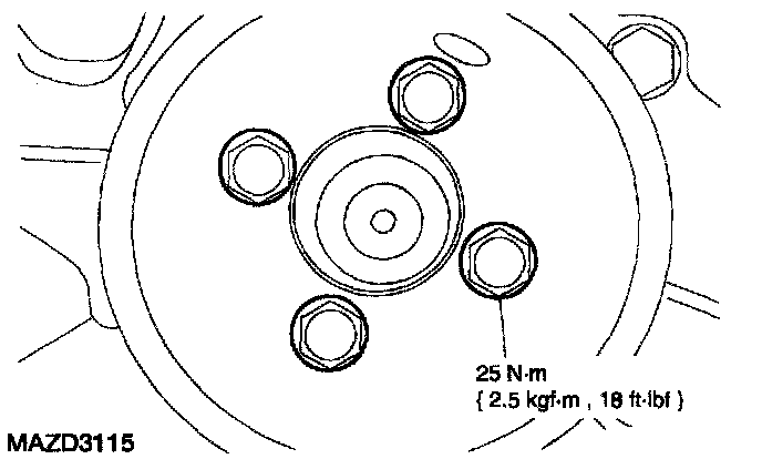 3. Apply pipe sealant with Teflon to the bolts to be installed in the locations shown.