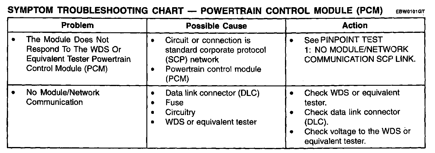 Symptom Troubleshooting Chart - Powertrain Control Module (PCM):