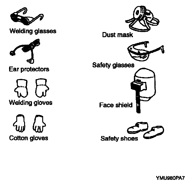 - Protective head covering and safety shoes should always be worn. Depending upon the nature of the work, gloves, safety glasses, ear protectors, face shield, etc., should also be used.