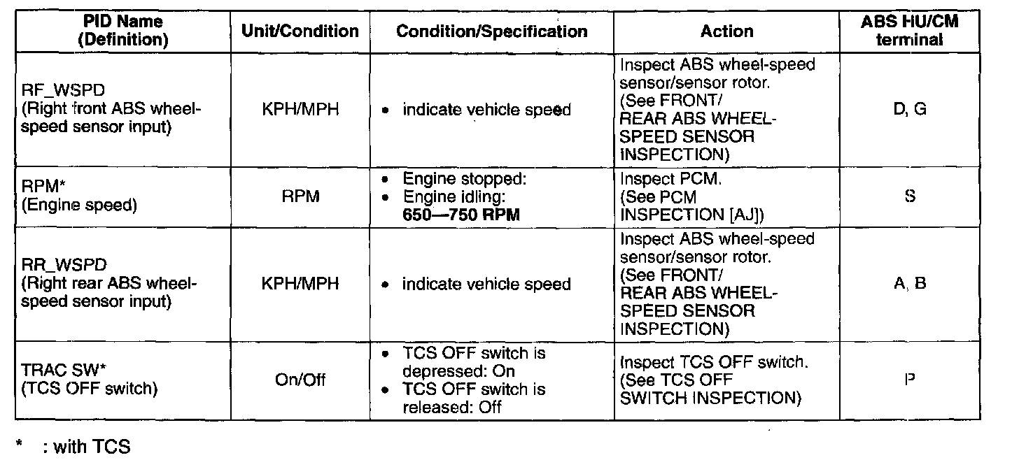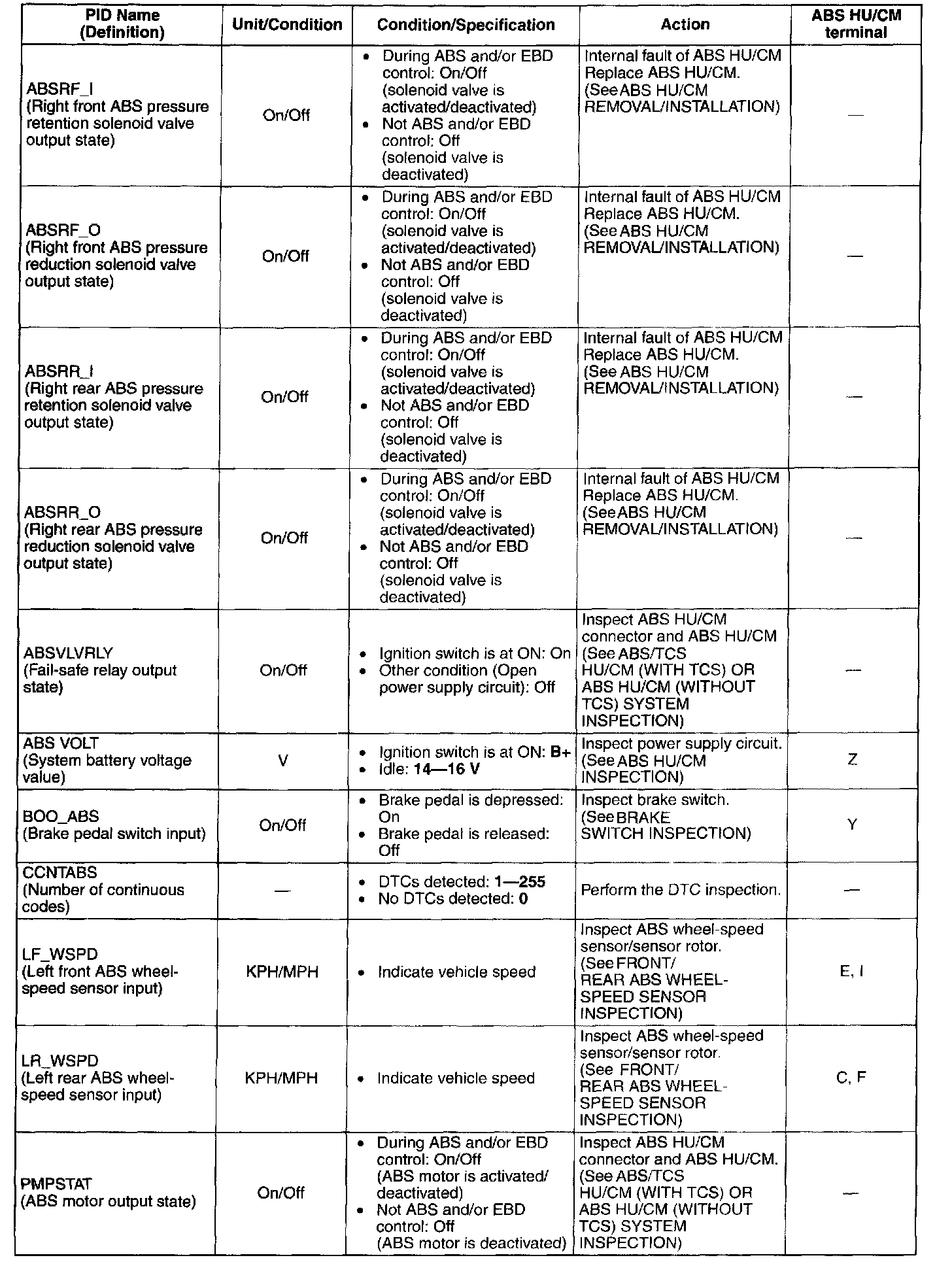 PID/DATA Monitor Table (part 1):