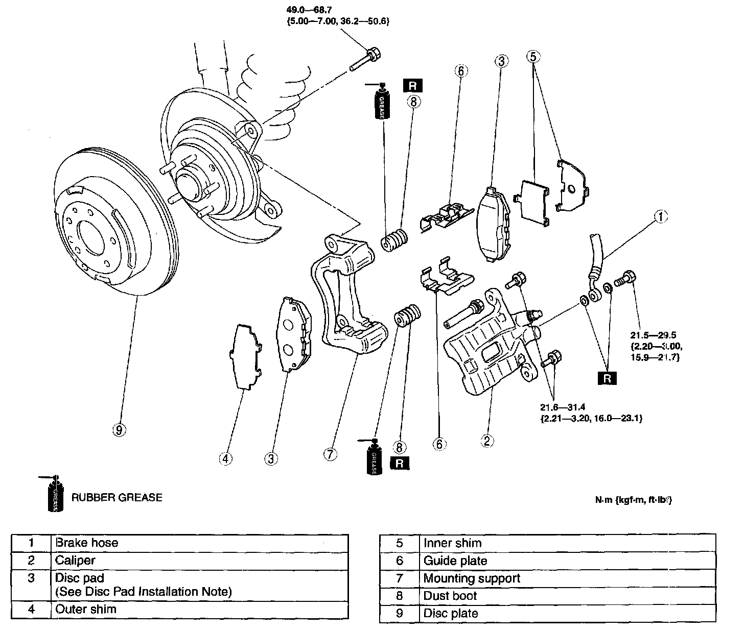 REAR BRAKE (DISC) REMOVAL/INSTALLATION1. Remove in the order indicated in the table.
