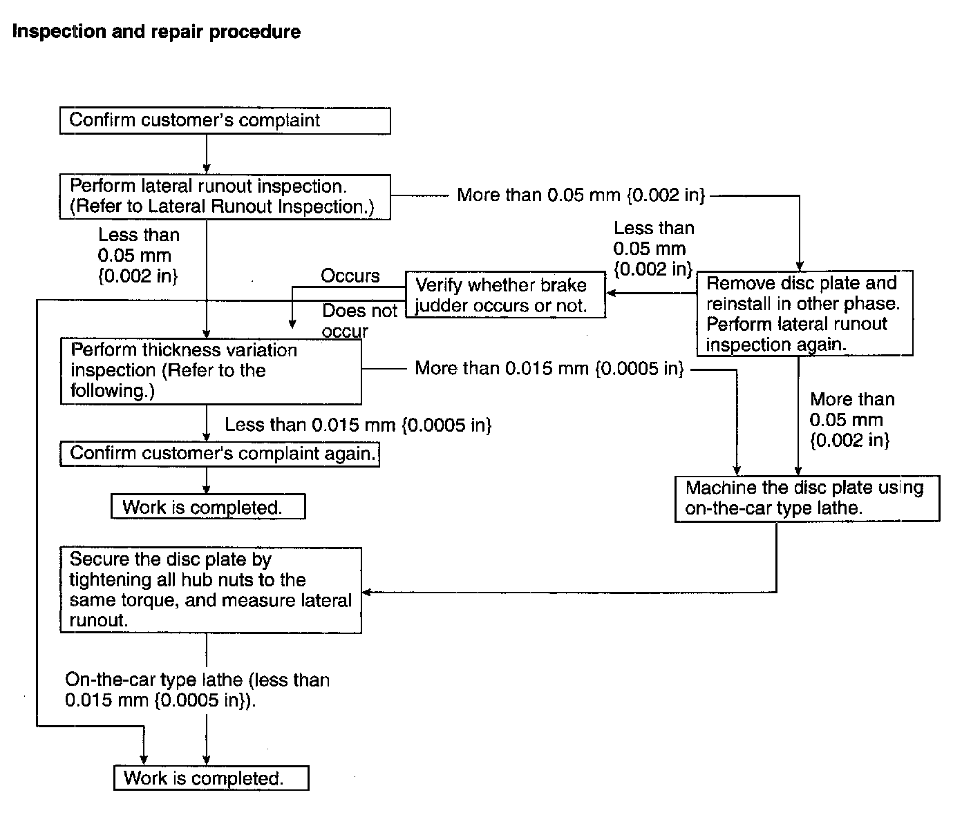 ^ Excessive runout may result if the disc plate is removed from the vehicle then machined. Machine the disc plate while installed on the vehicle.