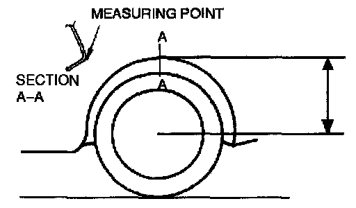 6. Measure the height from the center of the wheel to the fender brim. The difference between the left and right measurement must not exceed 10 mm (0.39 inch).