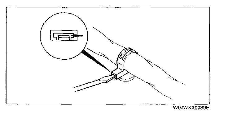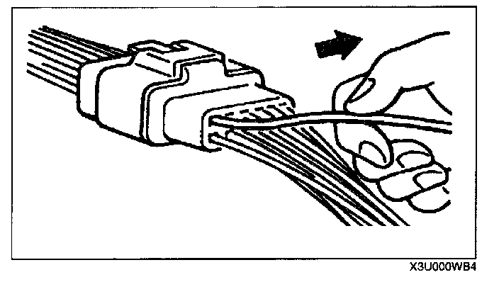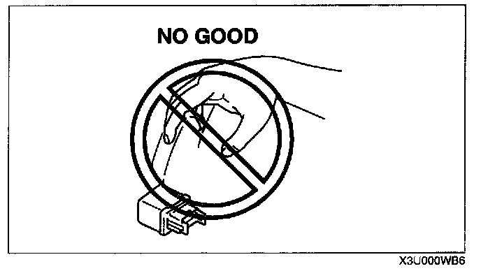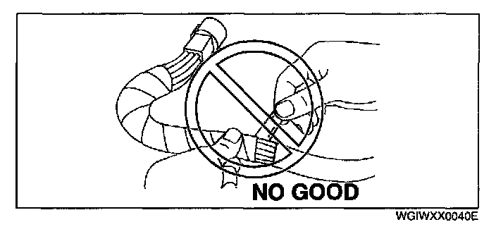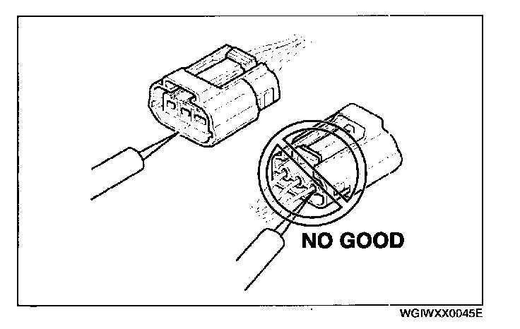 - When a tester is used to inspect for continuity or measuring voltage, insert the tester probe from the wiring harness side.