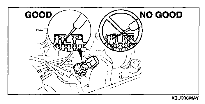 CAUTION: To prevent damage to the terminal, wrap a thin wire around the tester probe before inserting into terminal.