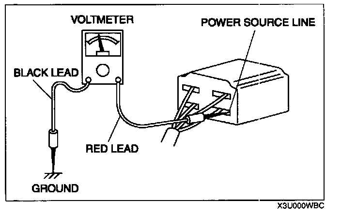 CAUTION: Do not connect a jumper wire from the power source line to a body ground. This may cause burning or other damage to wiring harnesses or electronic components.