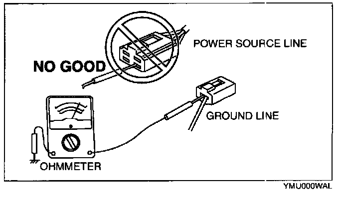 CAUTION: Do not connect the ohmmeter to any circuit where voltage is applied. This will damage the ohmmeter.