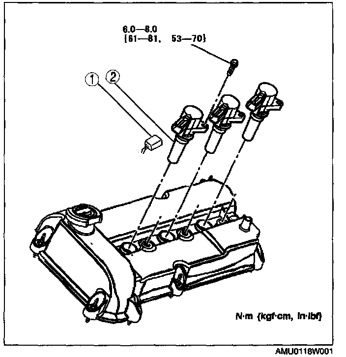 IGNITION COIL REMOVAL/INSTALLATION1. Disconnect the negative battery cable.