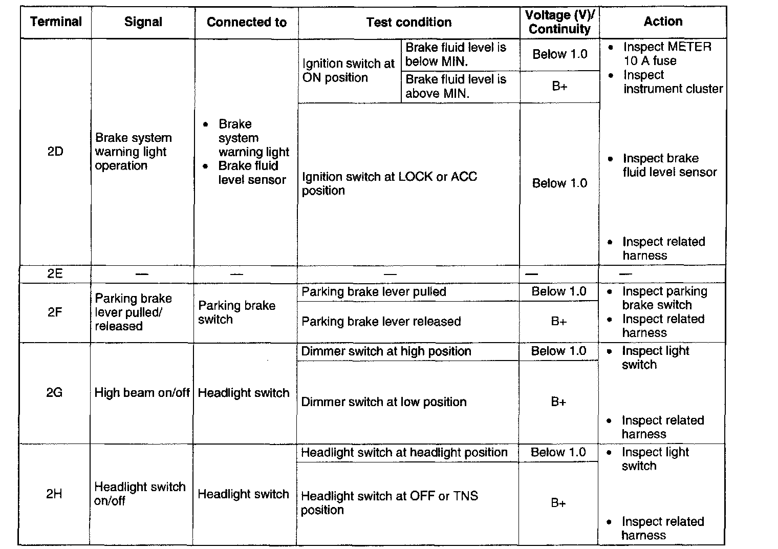 Terminal Voltage Table (Reference) - Terminal (2D - 2H):