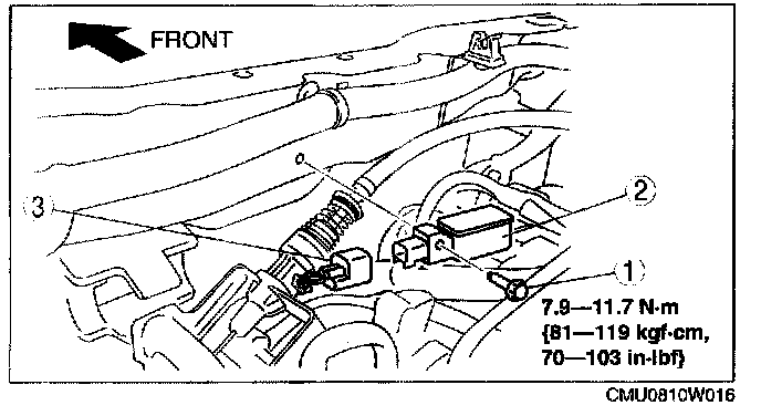 CRASH ZONE SENSOR REMOVAL/INSTALLATIONWARNING: Handling the crash zone sensor improperly can accidentally deploy the air bags and pre-tensioner seat belts, which may seriously injure you. Read the service warnings and cautions before handling the crash zone sensor.