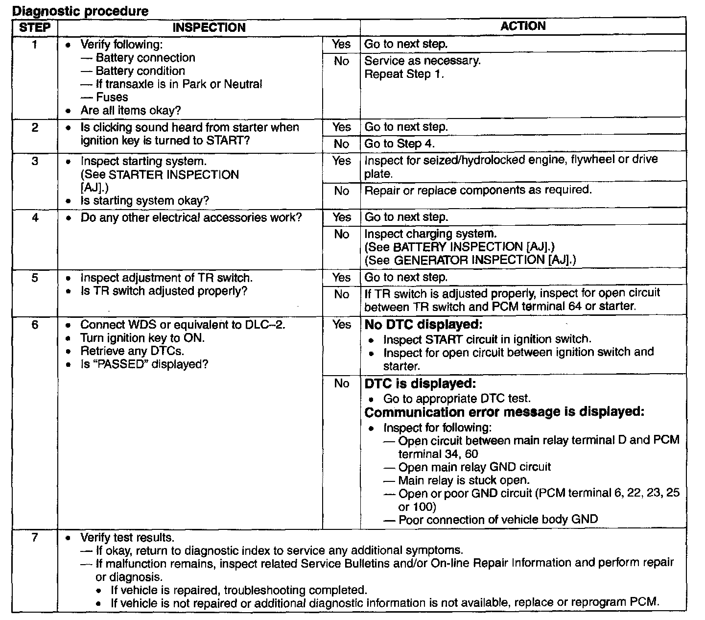 Starting System: Testing and Inspection