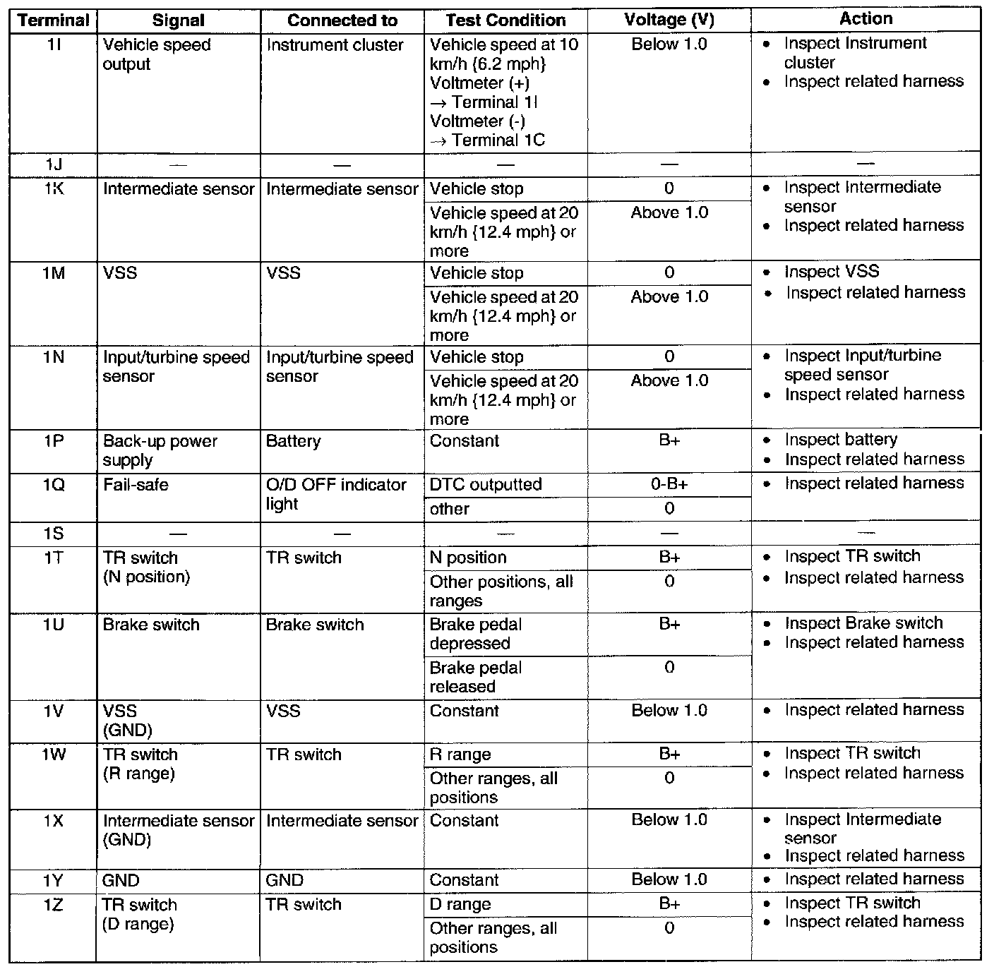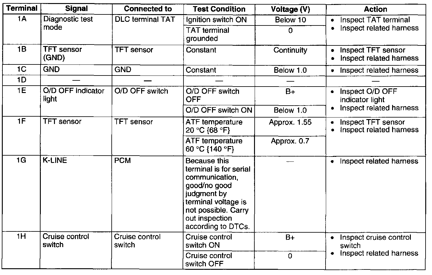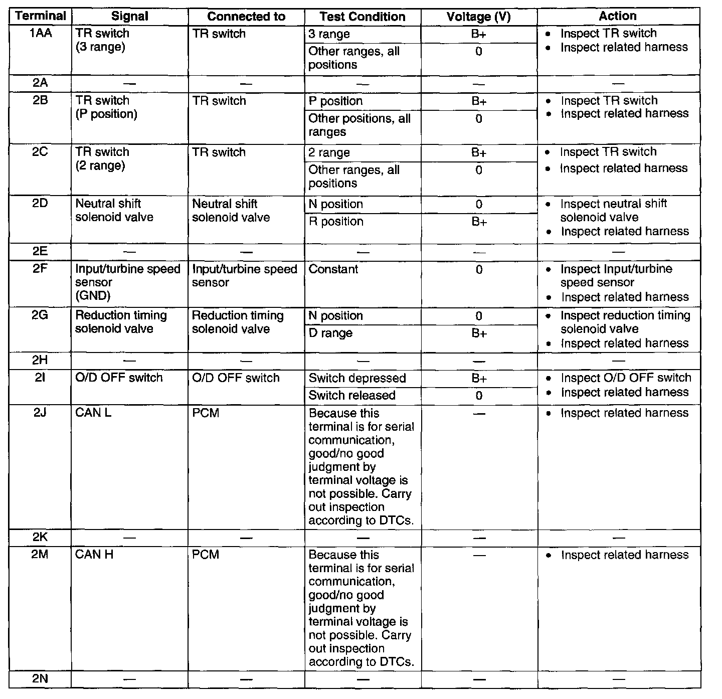 TCM INSPECTIONTerminal Voltage Table (Reference)