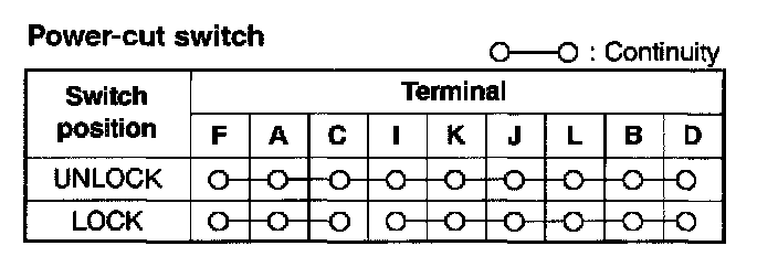 2. When inspecting the passenger's side and the rear, verify that the power-cut switch is at UNLOCK.
