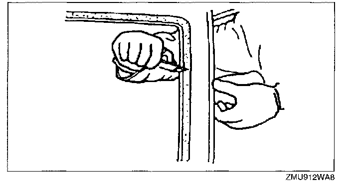 1. Make a hole through the sealant except fasteners from the inside of the vehicle using an awl.