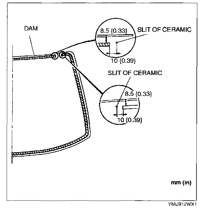 3. Securely bond a dam along the circumference of the glass 8.5 mm {0.33 in} from the edge.