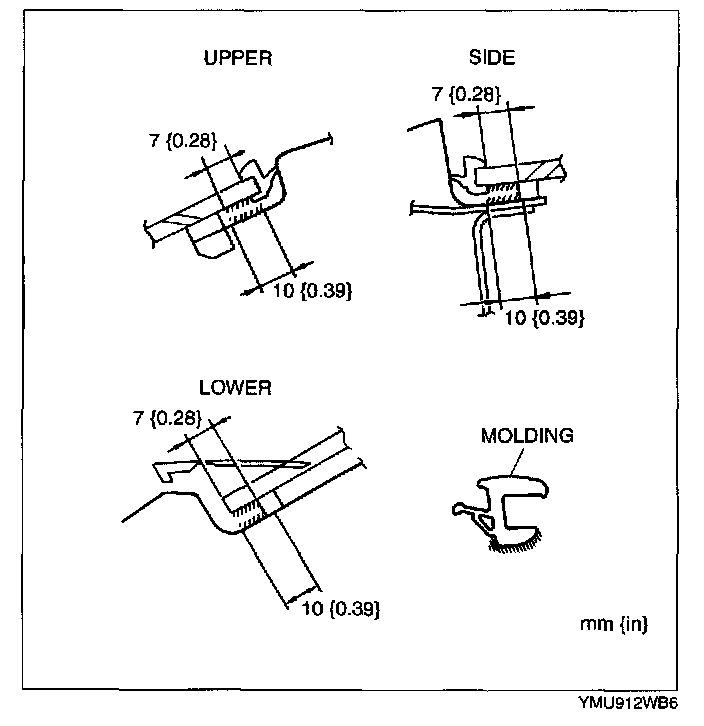 NOTE: Use only glass primer on the glass, and body primer on the body and the molding. Allow it to dry for approximately 30 minutes.