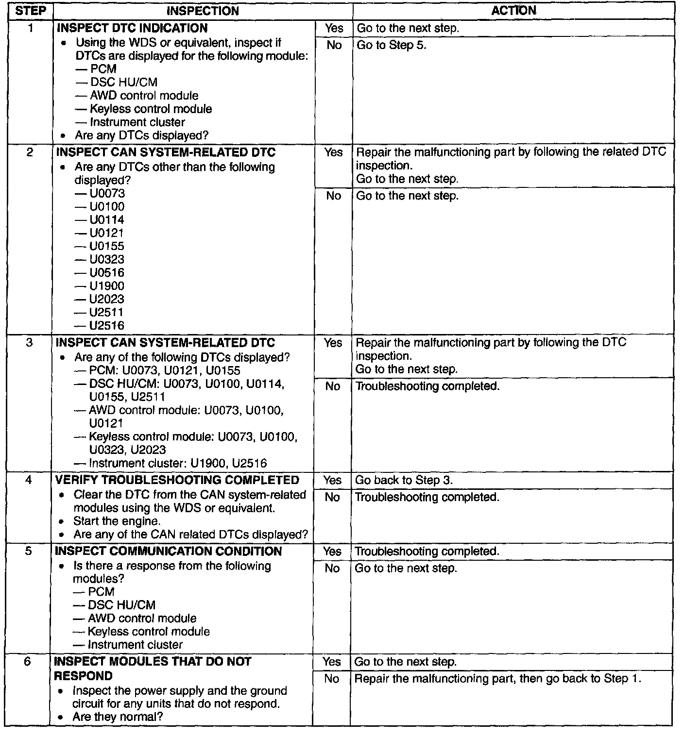 - If the controller area network (CAN) system is malfunctioning, read the DTCs of the following modules, using the SST (WDS or equivalent) to determine the malfunctioning system.