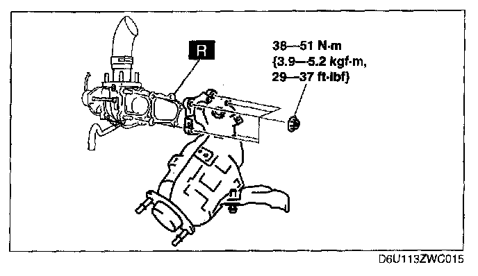Tightening torque: 38-51 N.m {3.9-5.2 kgf.m, 29-37 ft.lbf}