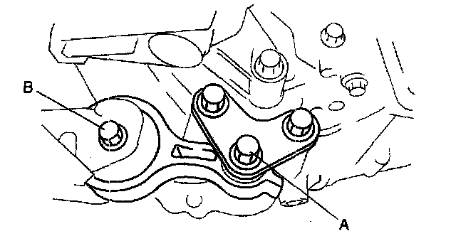 2. Tighten through-bolt B on the crossmember side.