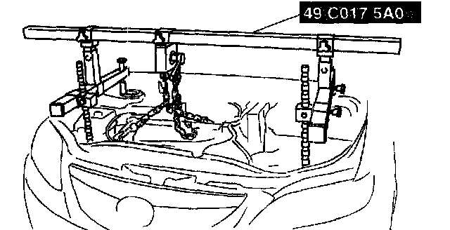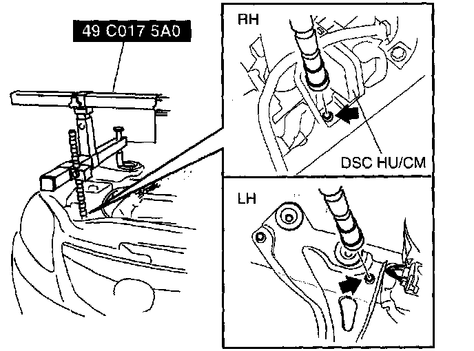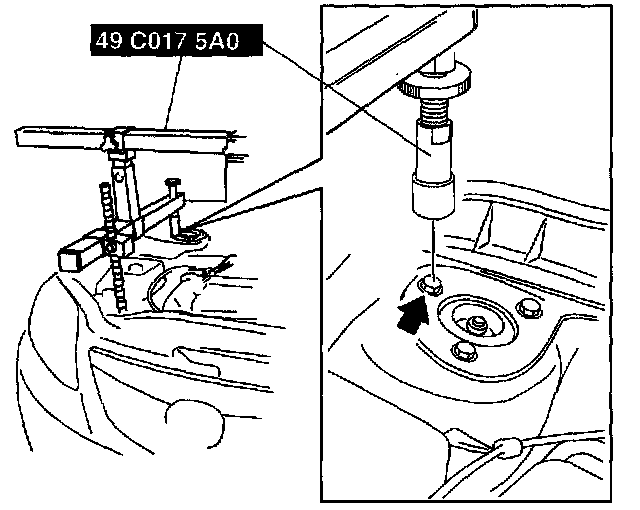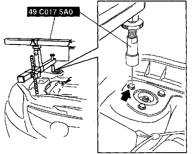 1) Install the right rear shaft of the SST to the bolt of the right shock absorber as shown in the figure.