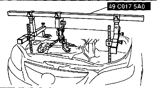 4. Remove the hoist and secure the engine and transaxle using SST.