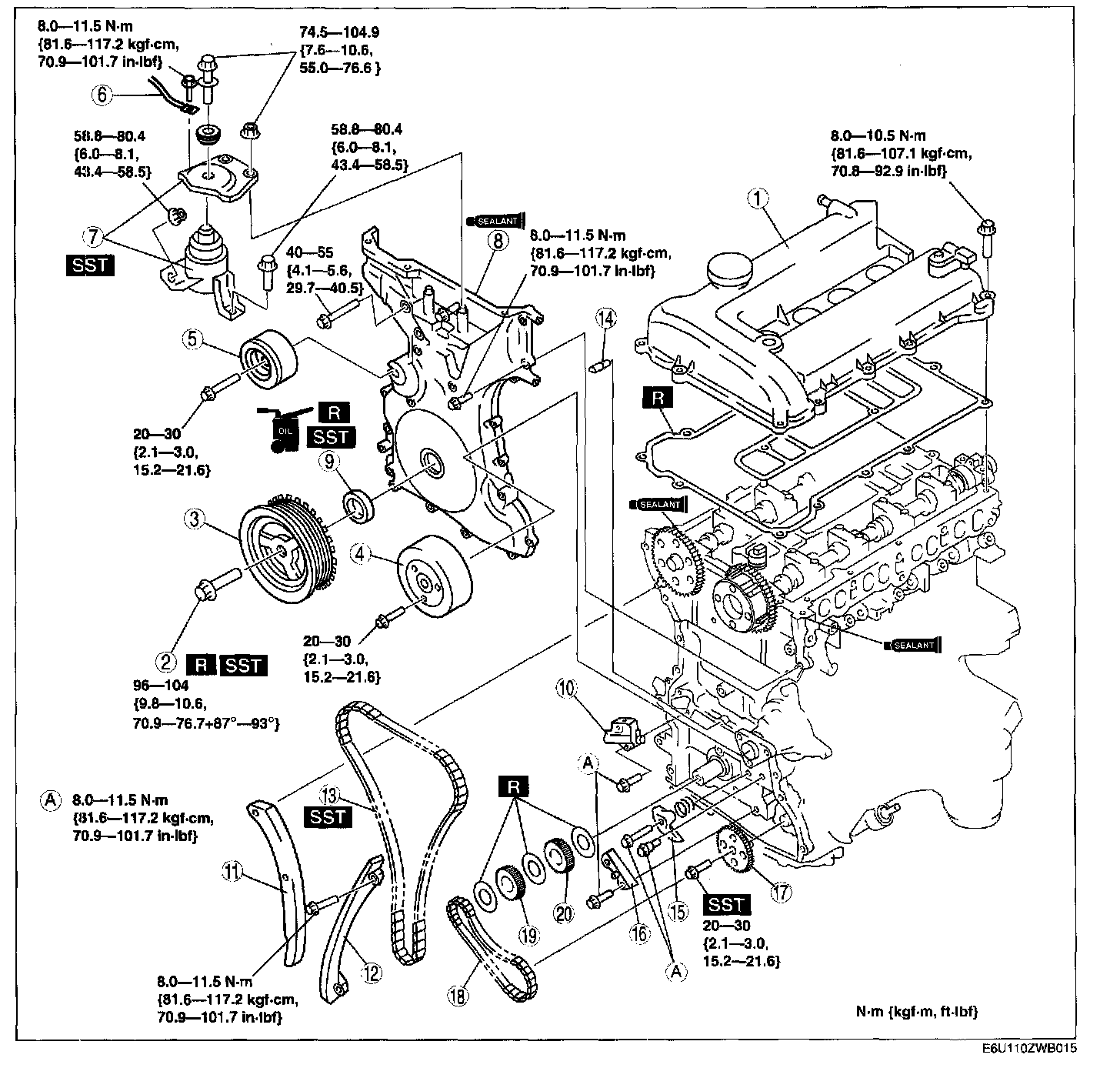 96 - 104 Nm (9.8 - 10.6 kgf-m, 70.9 - 76.7 ft. lbs.)
