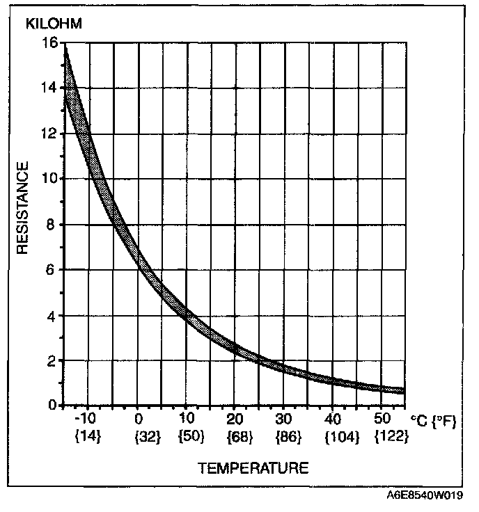 - If the resistance is not as shown in the graph, replace the ambient temperature sensor.