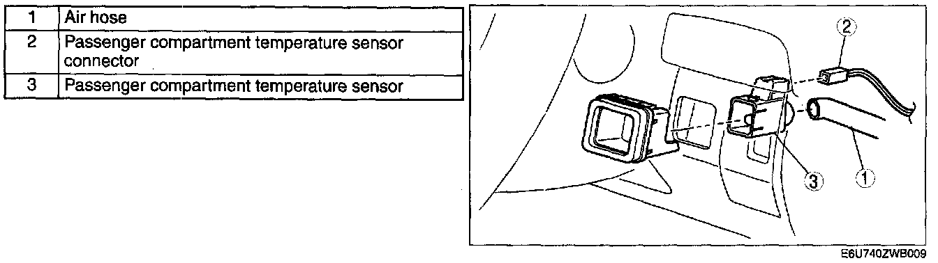 PASSENGER COMPARTMENT TEMPERATURE SENSOR REMOVAL/INSTALLATION1. Disconnect the negative battery cable.